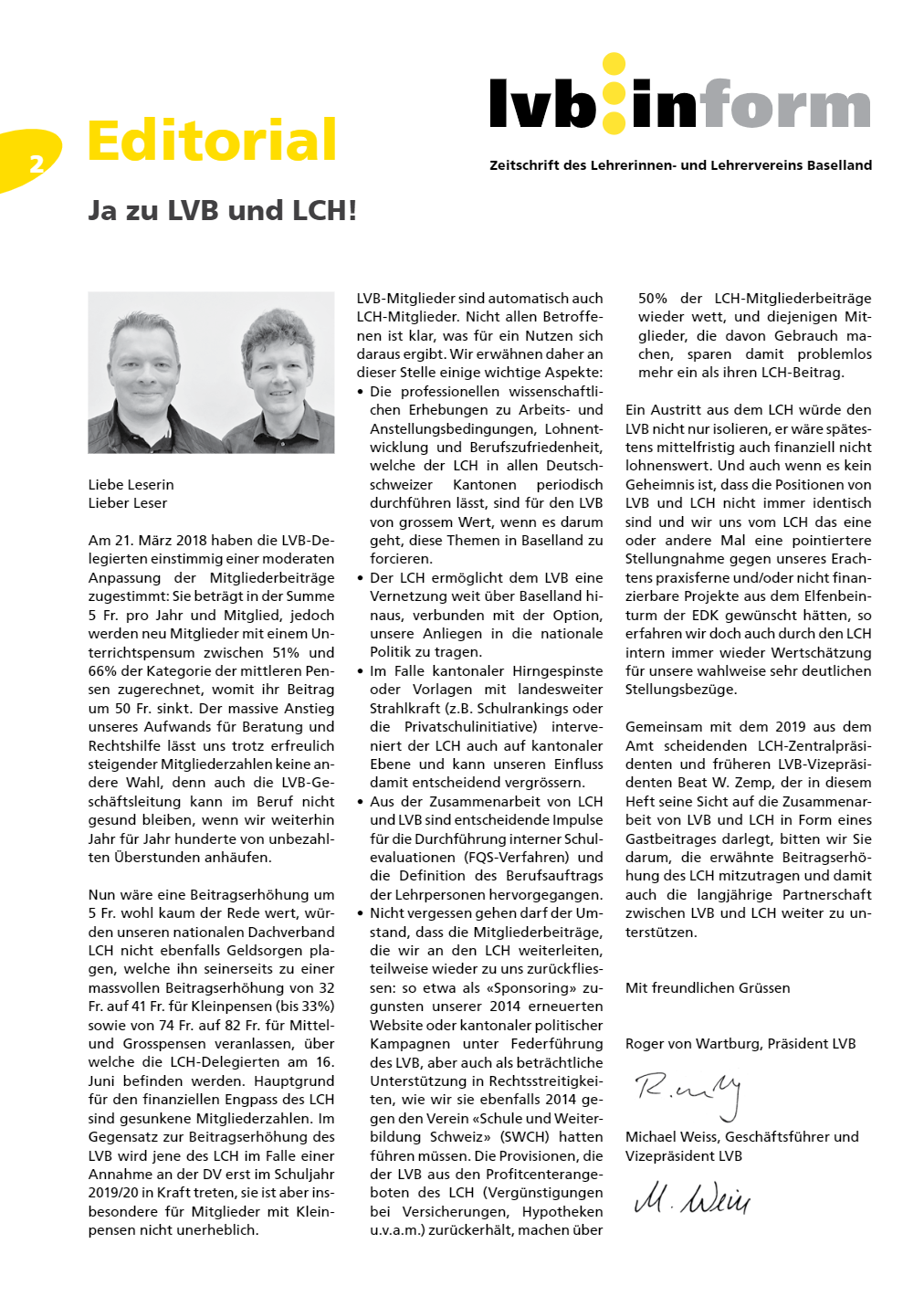 Am 21. März 2018 haben die LVB-Delegierten einstimmig einer moderaten Anpassung der Mitgliederbeiträge zugestimmt…