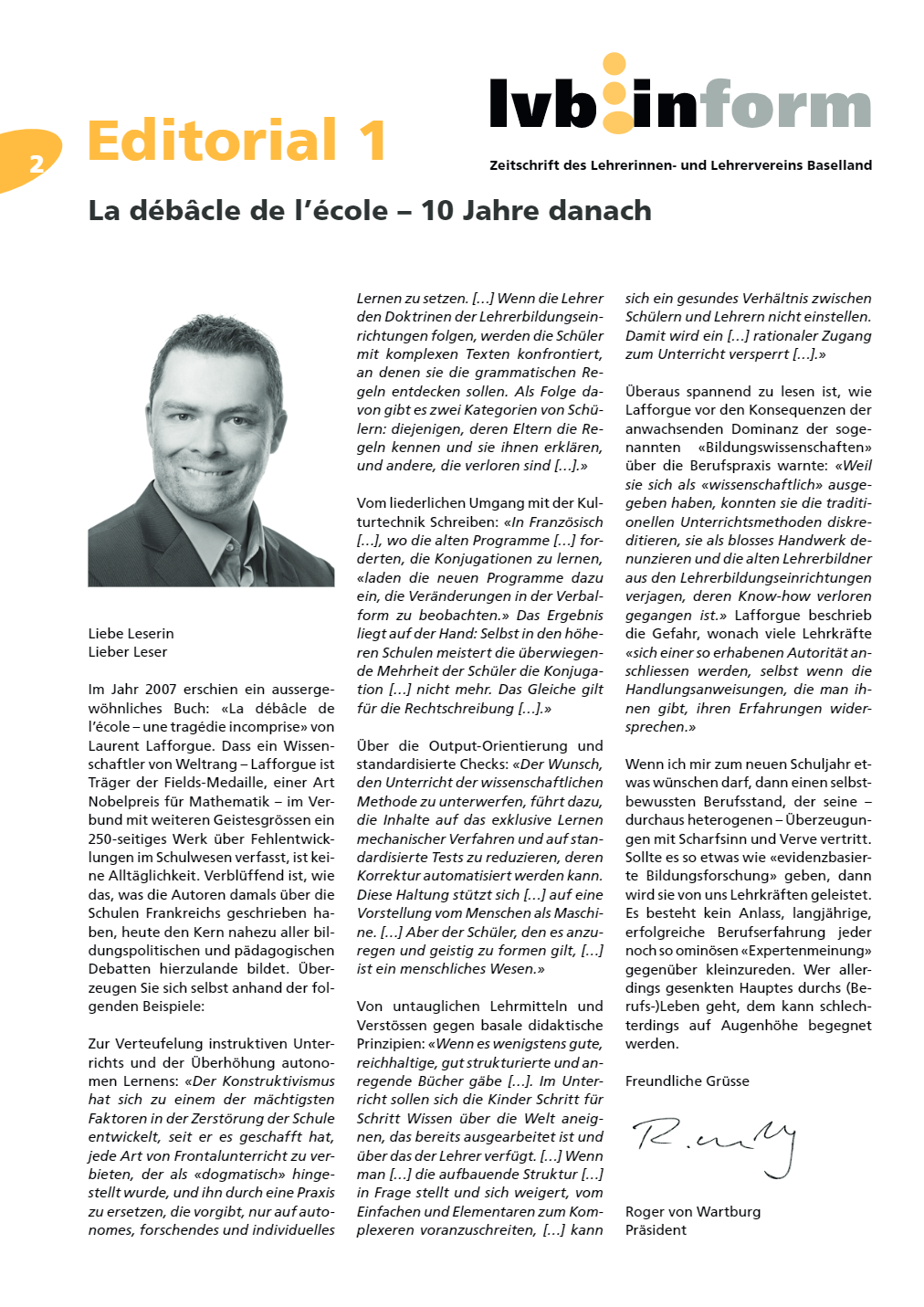 In meiner Arbeit als Interessenvertreter der Baselbieter Lehrerinnen und Lehrer sehe ich mich regelmässig von verschiedener Seite…