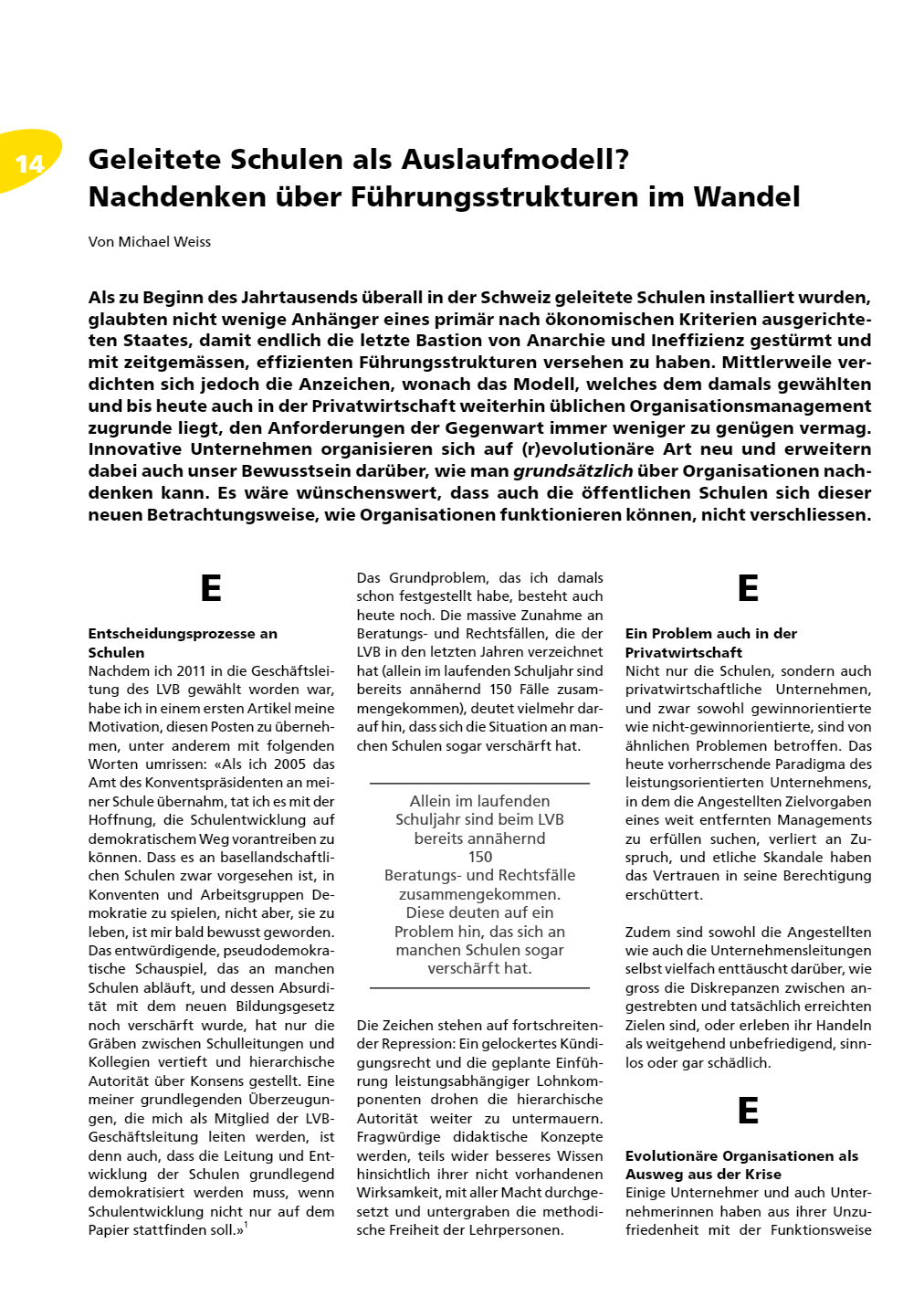 Als zu Beginn des Jahrtausends überall in der Schweiz geleitete Schulen installiert wurden, glaubten nicht wenige Anhänger eines primär nach…