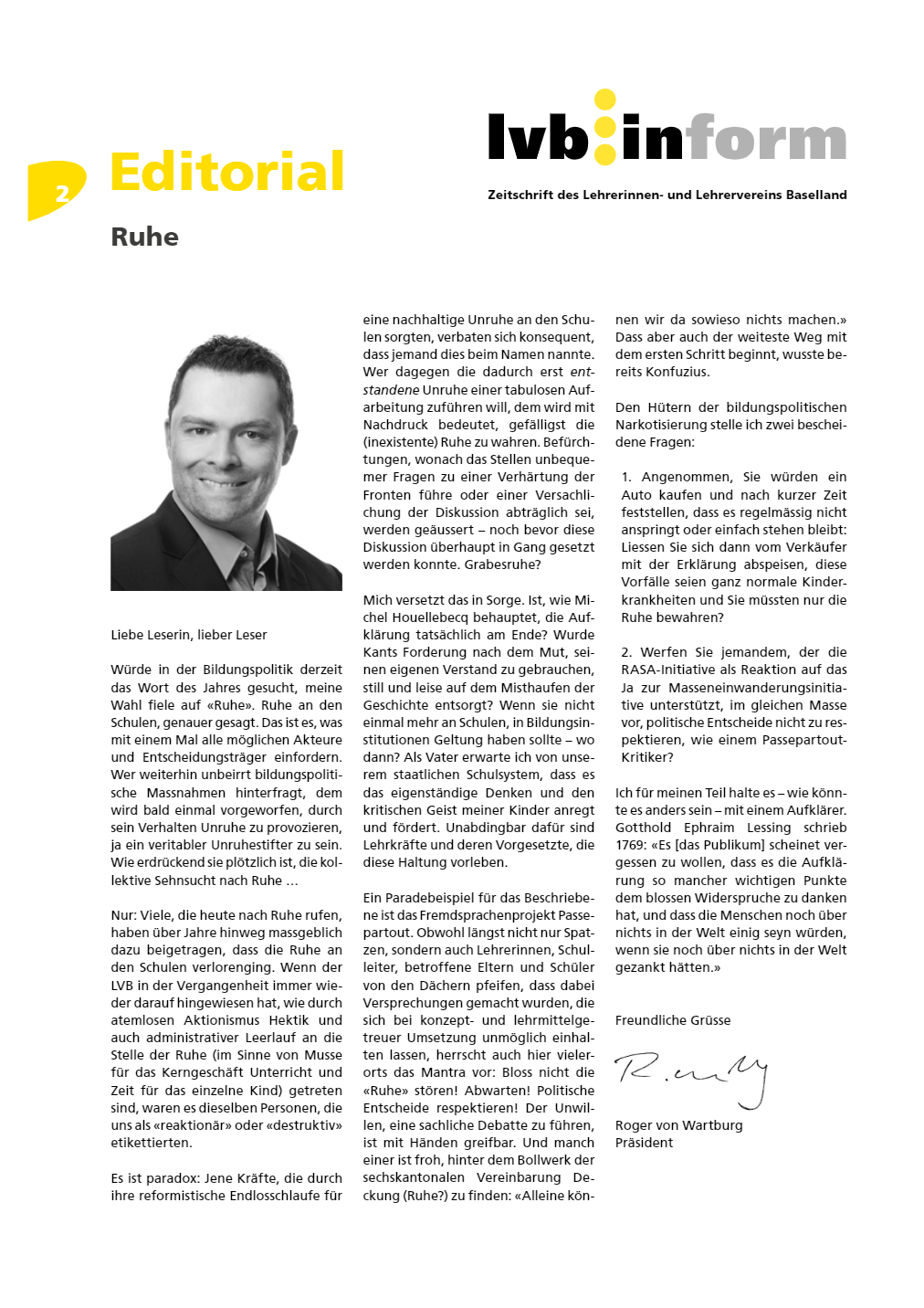 Liebe Mitglieder In den vergangenen Tagen und Wochen meldeten sich in der «Basler Zeitung» und der «Basellandschaftlichen Zeitung» mehrere Exponenten