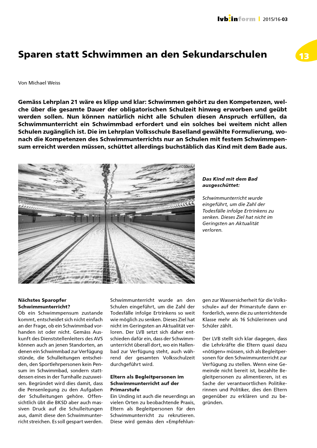 Gemäss Lehrplan 21 wäre es klipp und klar: Schwimmen gehört zu den Kompetenzen, welche über die gesamte Dauer der obligatorischen