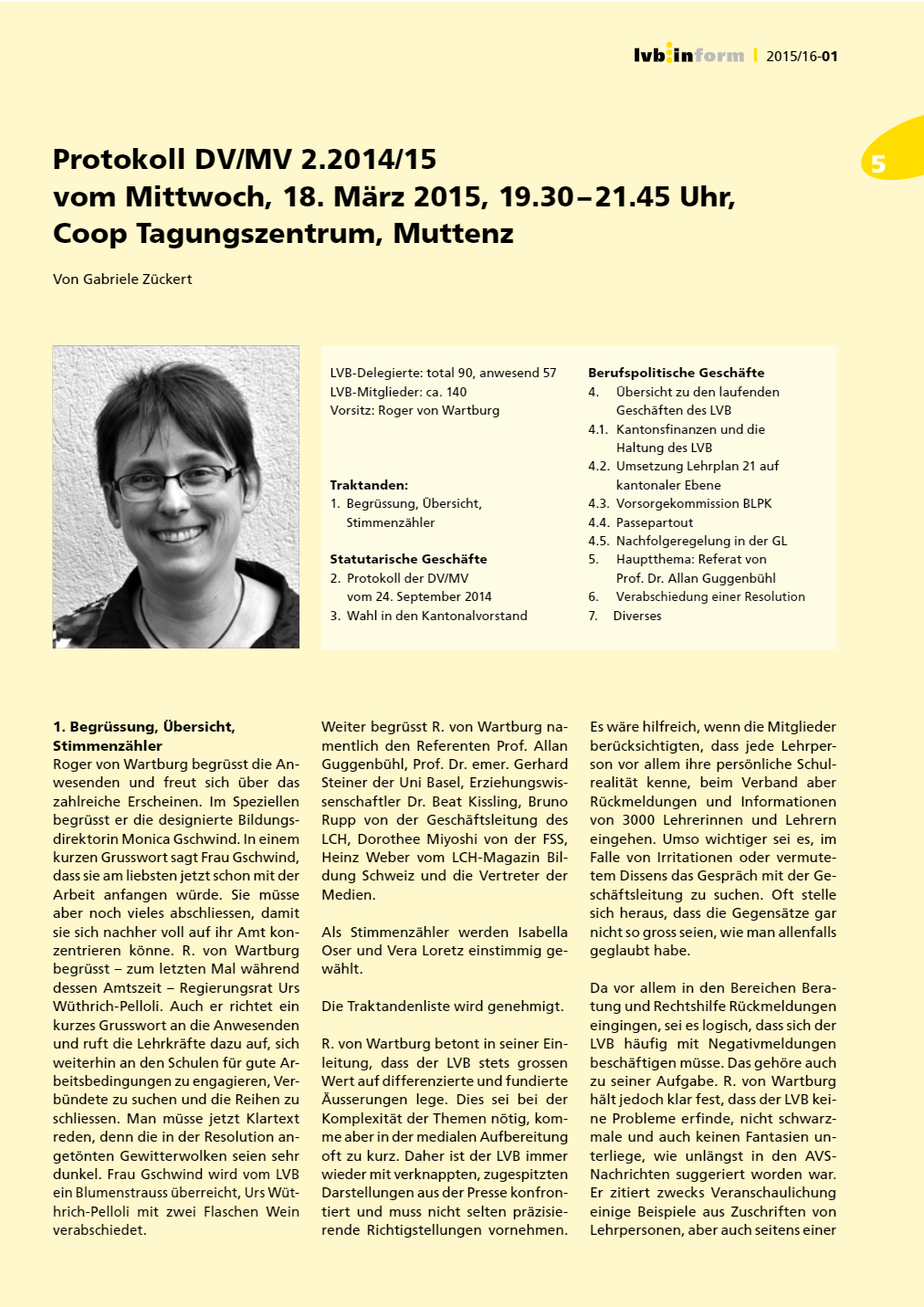 Protokoll DV/MV 2.2014/15 vom Mittwoch, 18. März 2015, 19.30–21.45 Uhr, Coop Tagungszentrum, Muttenz