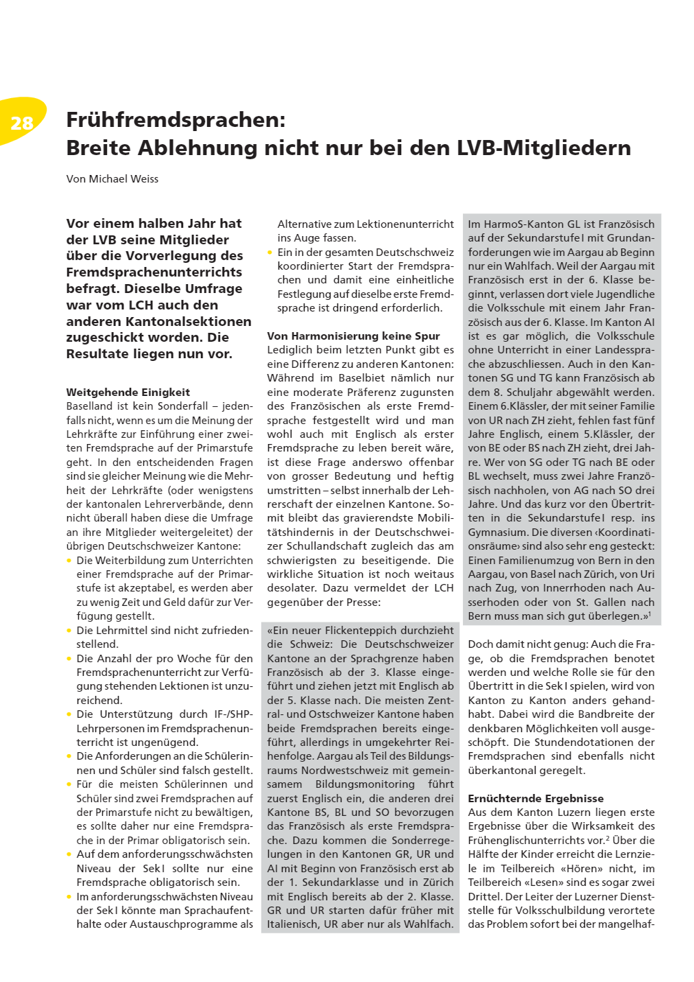 Vor einem halben Jahr hat der LVB seine Mitglieder über die Vorverlegung des Fremdsprachenunterrichts befragt…