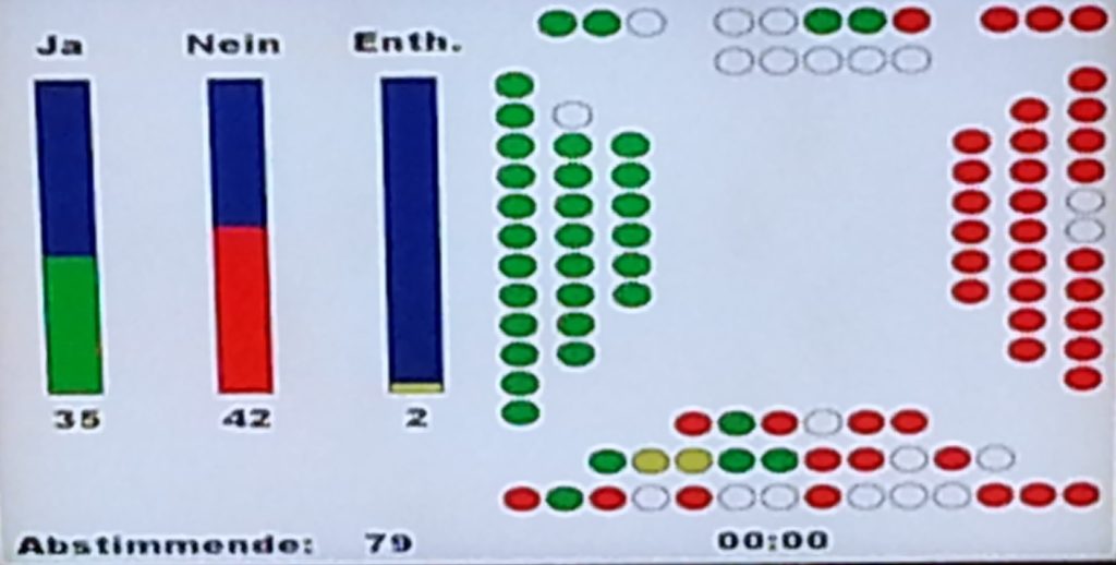 „Ja“ bedeutete in diesem Fall ein Votum für 0.5%, „Nein“ für 0.3%. Enthaltungen gab es keine.