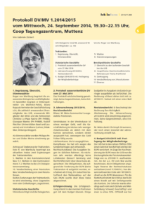 Protokoll DV/MV 1.2015/16 vom Mittwoch, 23. September 2015, 19.30–22.30 Uhr, Coop Tagungszentrum, Muttenz