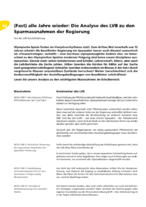 Analyse des LVB zu den Sparmassnahmen der Regierung