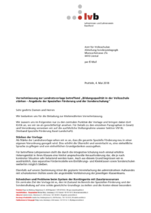 Vernehmlassung zur Landratsvorlage betreffend „Bildungsqualität in der Volksschule stärken…